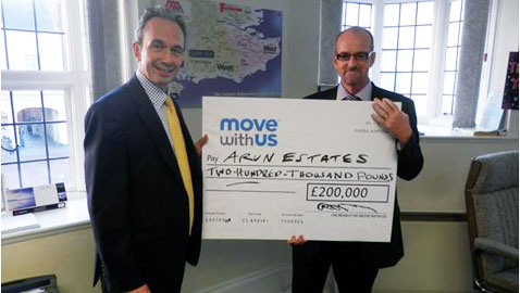 Arun Estates was presented with a cheque for £200,000 for completions in August (see image).